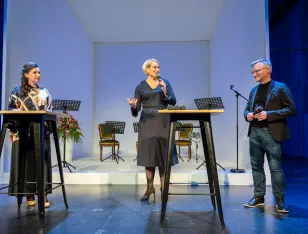 Festivaleröffnung mit Oberbürgermeisterin Eva Weber, Kulturreferent Jürgen K. Enninger, Tom Kühnel, Jürgen Kuttner. Moderation: Marion Buk-Kluger.