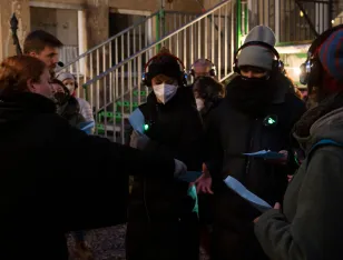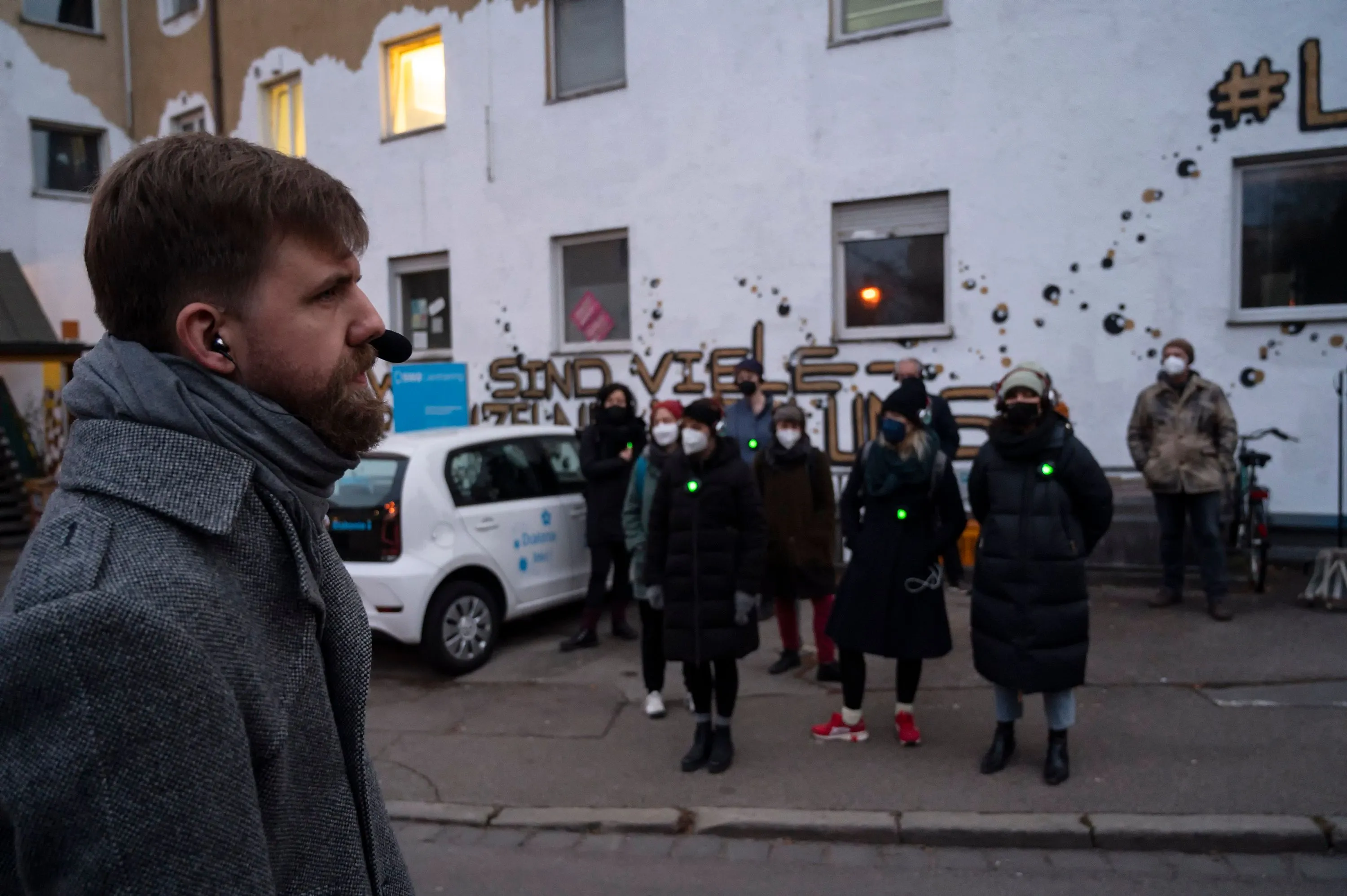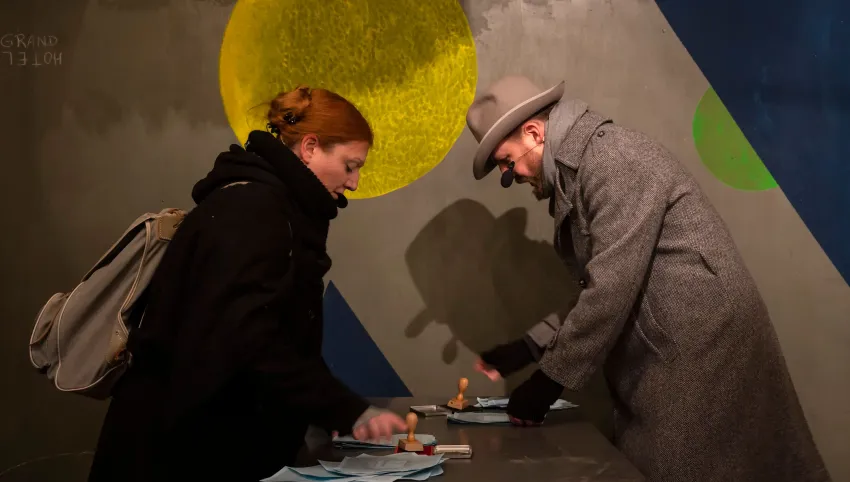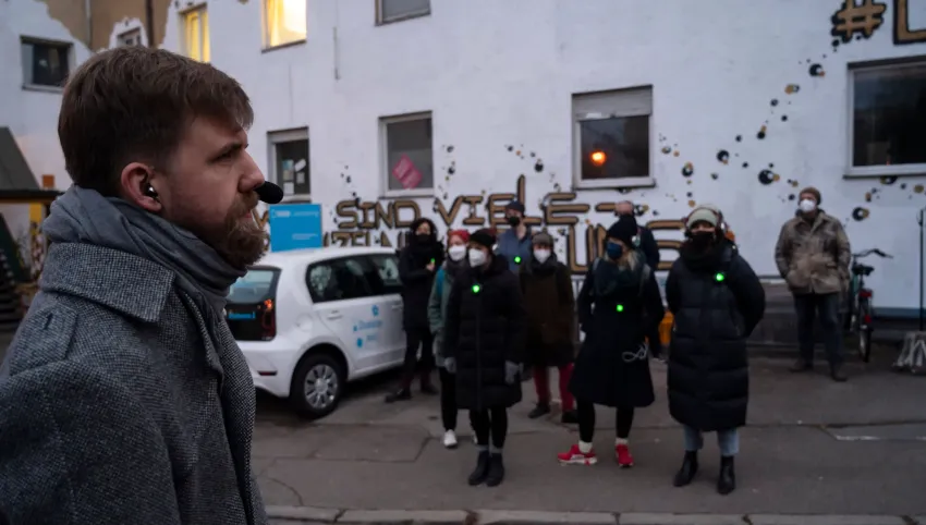 Sie sprechen vom Guten des Schäbigen, von der Ordnung der Sinnlosen, von der Tugend der Täuschung, von der veralteten Moderne. Auf dem Live-Audio-Walk begleiten dich zwei Gestalten durch den Transitbereich ihres Exillebens. In den brechtschen Gassen der Stadt verstecken sie sich und tauchen wieder auf. Du versteckst dich und tauchst wieder auf. Bald darauf entfernen sie sich, ein jeder an seine Statt. Um vielleicht doch wieder gesehen zu werden. Und am Ende stellt sich die Frage: Wo muss ich hin, wer darf ich sein?