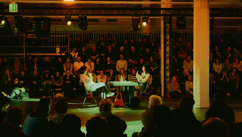 Im Anschluss an die Lesung in Brechts Kraftklub sprach die Autorin mit dem Publikum und der Moderatorin Samira Eissa über Erkenntnisse aus dem Schreibprozess zu ihrem aktuellen Titel.