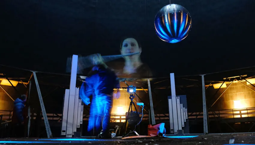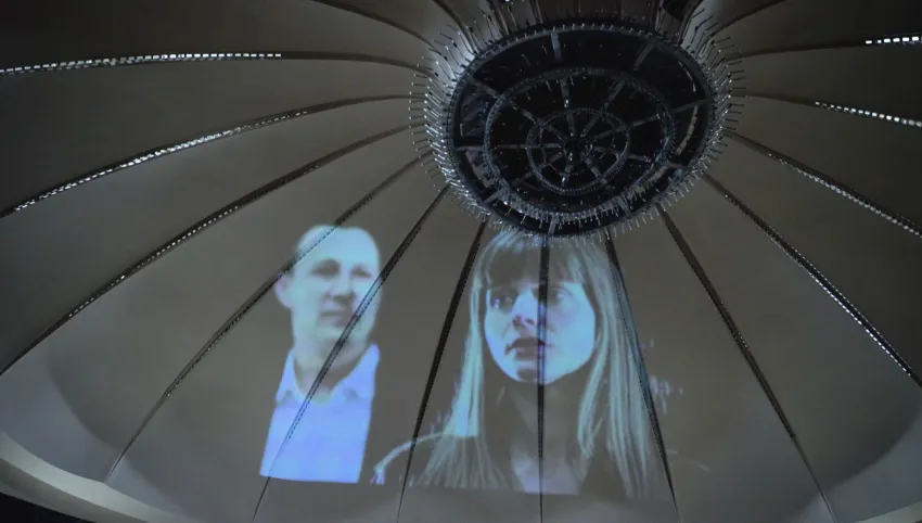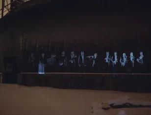 Das Brechtfestival lässt die Bolschewistische Kurkapelle Schwarz-Rot in einer Art ritueller Geisteraustreibung über die Häuserfassaden tanzen. Wiegenlieder von Brecht und Hölderlin, von Hanns Eisler und Kurt Weill orchestrieren den digitalen Streifzug durch das nächtliche Augsburg und senden ein lautes Signal auf die Bildschirme da draußen. Die Zukunft, die wir gemeinsam bauen, geht alle an.