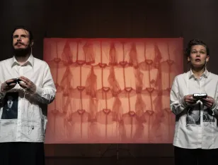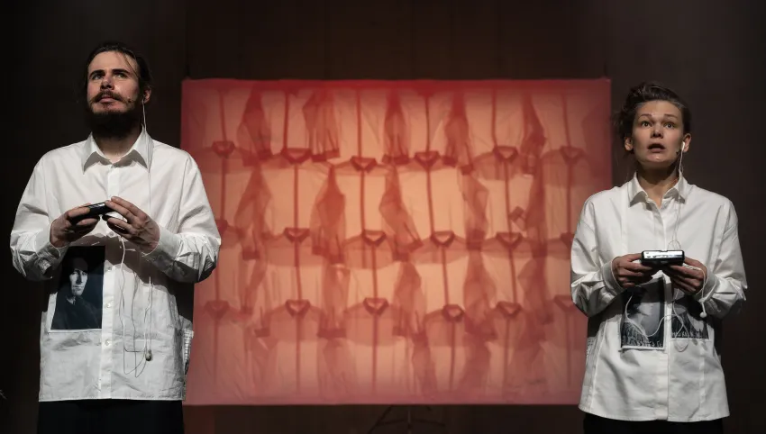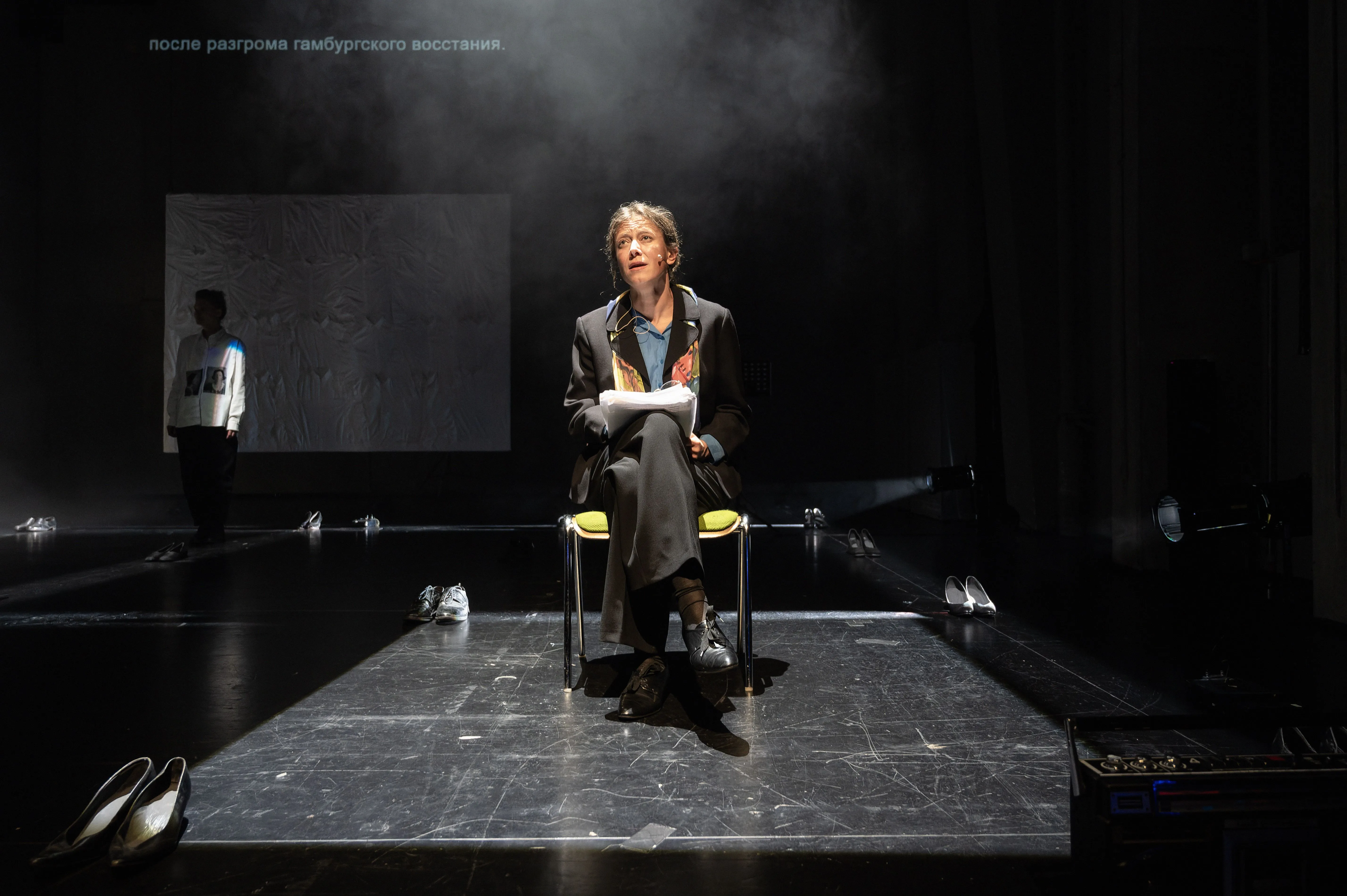 Mit: Katharina Spiering, Alena Starostina, Ivan Nikolaev / Text: Nana Grinstein / Regie: Anastasia Patlay / Bühnenbild: Mikhail Zaikanov / Musik: Daria Zvezdina / Choreografie: Tatiana Chizhikova / Kostüme: Yulia Vetrova / Licht: Yelena Perelman