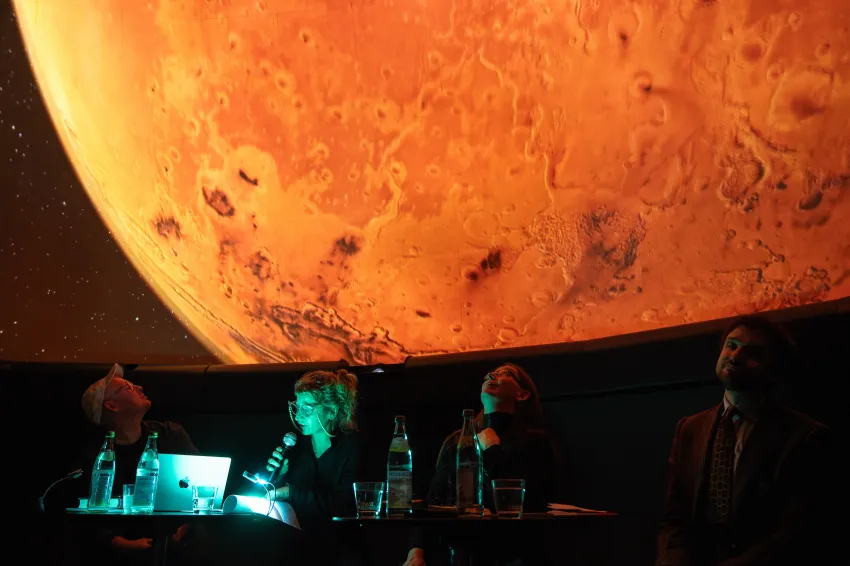 Inwiefern bietet Science-Fiction die Möglichkeit, die Gegenwart zu reflektieren? Und inwiefern die Vergangenheit? Die neue Ausgabe des deutsch-chinesischen Science-Fiction-Magazins „Kapsel“ präsentiert die Kurzgeschichte »Zhurong auf dem Mars« von Regina Kanyu Wang, in der eine KI auf dem Roten Planeten auf Sinnsuche geht. Emma Braslavsky sucht in ihrem Buch „Erdling“ hingegen nach der entführten Sahra Wagenknecht – und wird auf dem Mars fündig. Warum brauchen wir gerade heute fantastische Geschichten? Welche Freiheiten und Einschränkungen bietet das Genre? Und warum ist der Mars ein menschlicher Sehnsuchtsort? Das Planetarium sorgt mit Bildern aus seinem Repertoire für die passende Kulisse.
