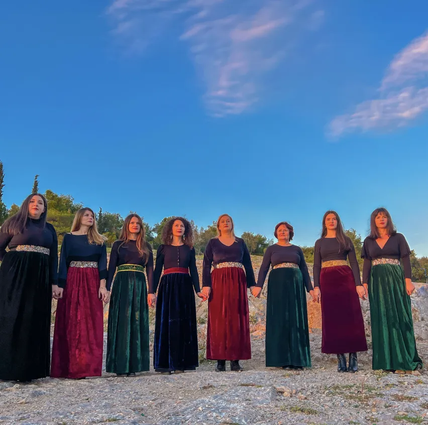 Die acht Sängerinnen pflegen eine Tradition des mehrstimmigen Gesangs, die in den griechisch-sprachigen Bergdörfern Südalbaniens und im Norden Griechenlands über Generationen von Frauen an Frauen weitergeben wurde, nun aber droht, vergessen zu werden. Geboren und aufgewachsen in den griechisch-sprachigen Dörfern rund um Deropolis und Politsani in Albanien, kennen die Sängerinnen ihre traditionellen Lieder von Kindesbeinen an. Doch erst seit 2015 treten sie regelmäßig als Gruppe auf. Mit ihren Auftritten leisten sie einen wichtigen Beitrag weiblichen Stimmen im südlichen Balkan ein neues Gewicht zu geben. Durch das Singen der alten Lieder werden unsichtbare Brücken gebaut zwischen der Vergangenheit und der Gegenwart. Erinnerungen aus der Kindheit verbinden sich mit Erfahrungen des täglichen Lebens.