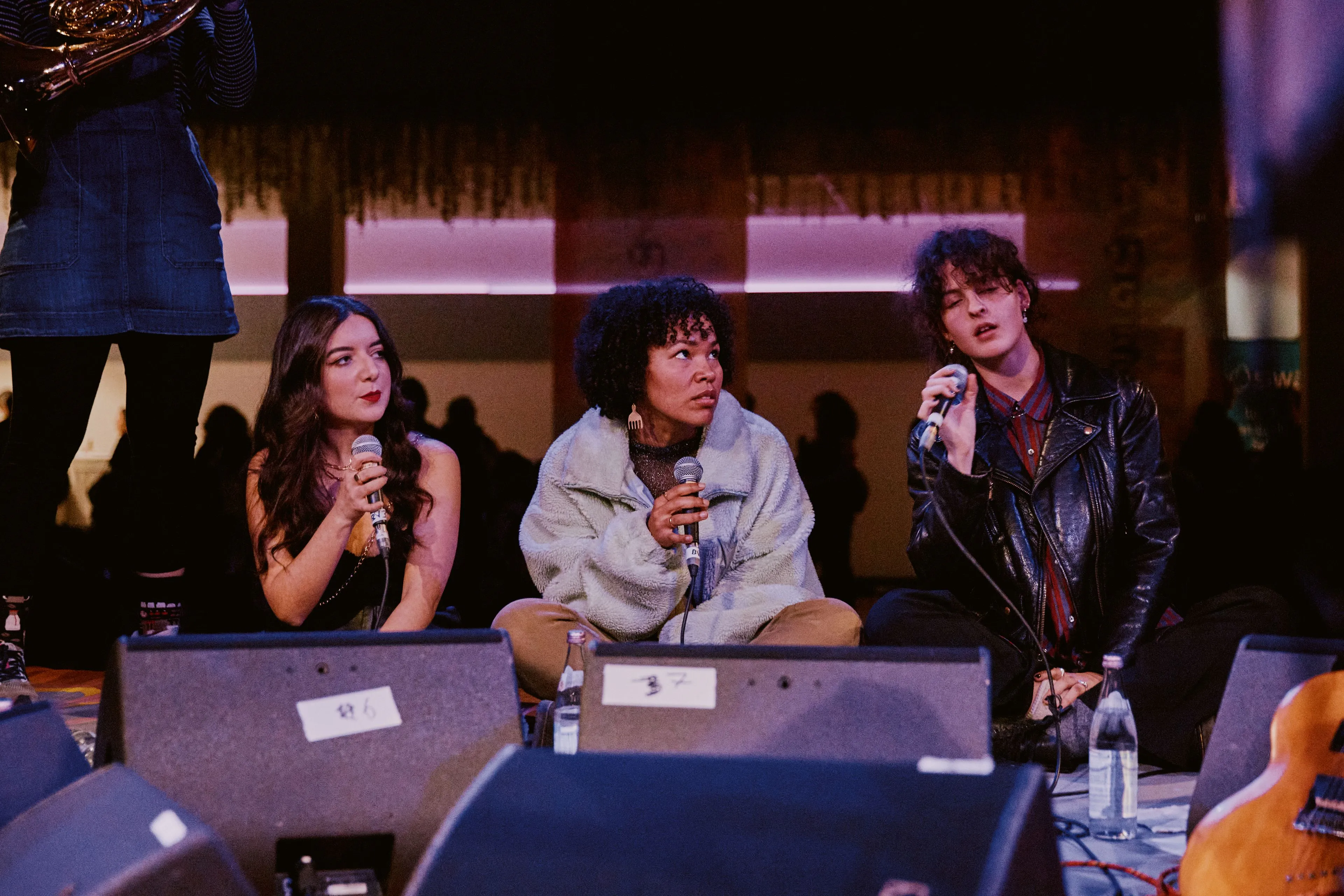 Alabster DePlume (saxophone, vocals, guitar), Micha Acher trumpet, sousaphone), Katharina Hauf (horn), Jan Kiesewetter (saxophone, bass clarinet), Hanna Sikasa (vocals), Ceci (vocals), Aylin Yildirim (vocals), Mjalisuso (kora), Takashi Ueno (guitar), Tom Jahn (moog, juno, rhodes), Girisha Fernando (bass), Markus Acher (drums)