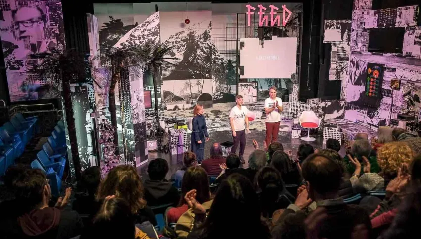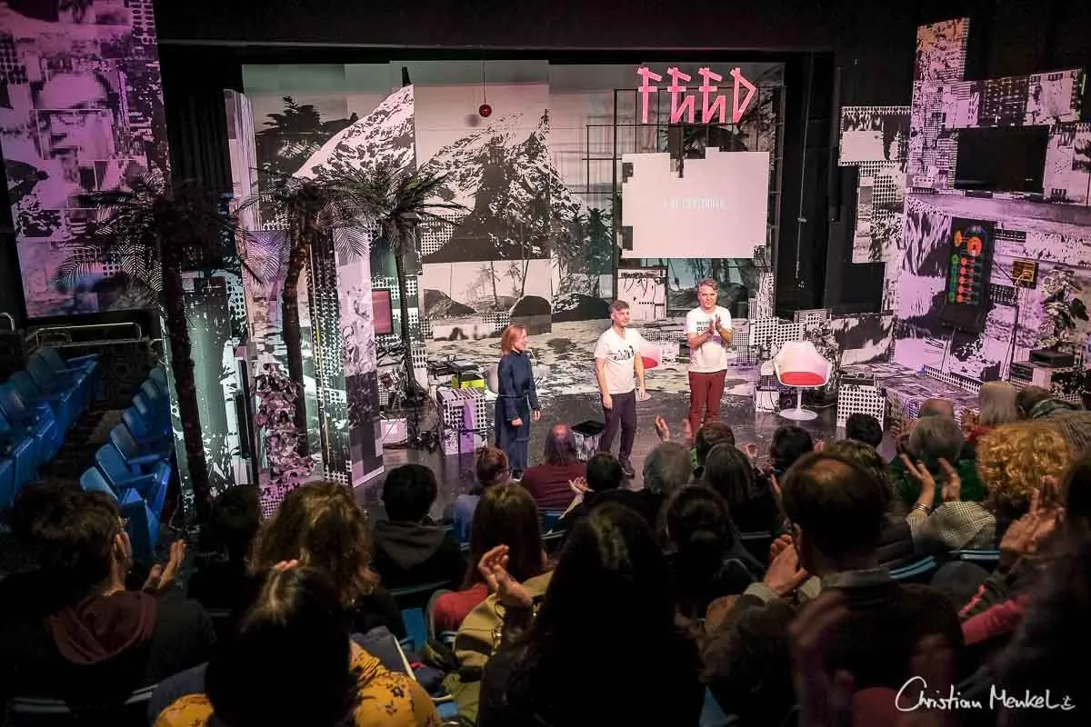 Von Brechts „Aufstieg und Fall der Stadt Mahagonny“ haben sich andcompany&Co. zu einer Frontal-Performance im Geiste der sozialistischen Anfänge des Internets inspirieren lassen. Ein Training für alle, die lernen wollen, die schwindelerregende Komplexität der Gegenwart auszuhalten.