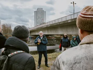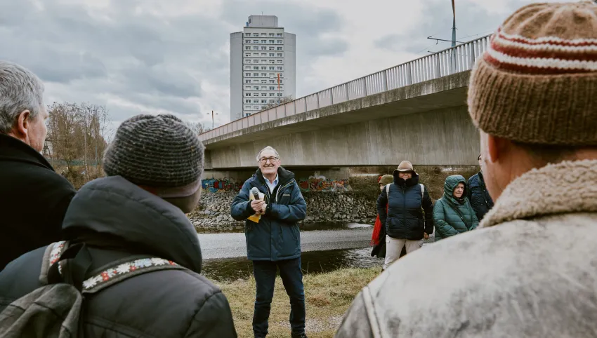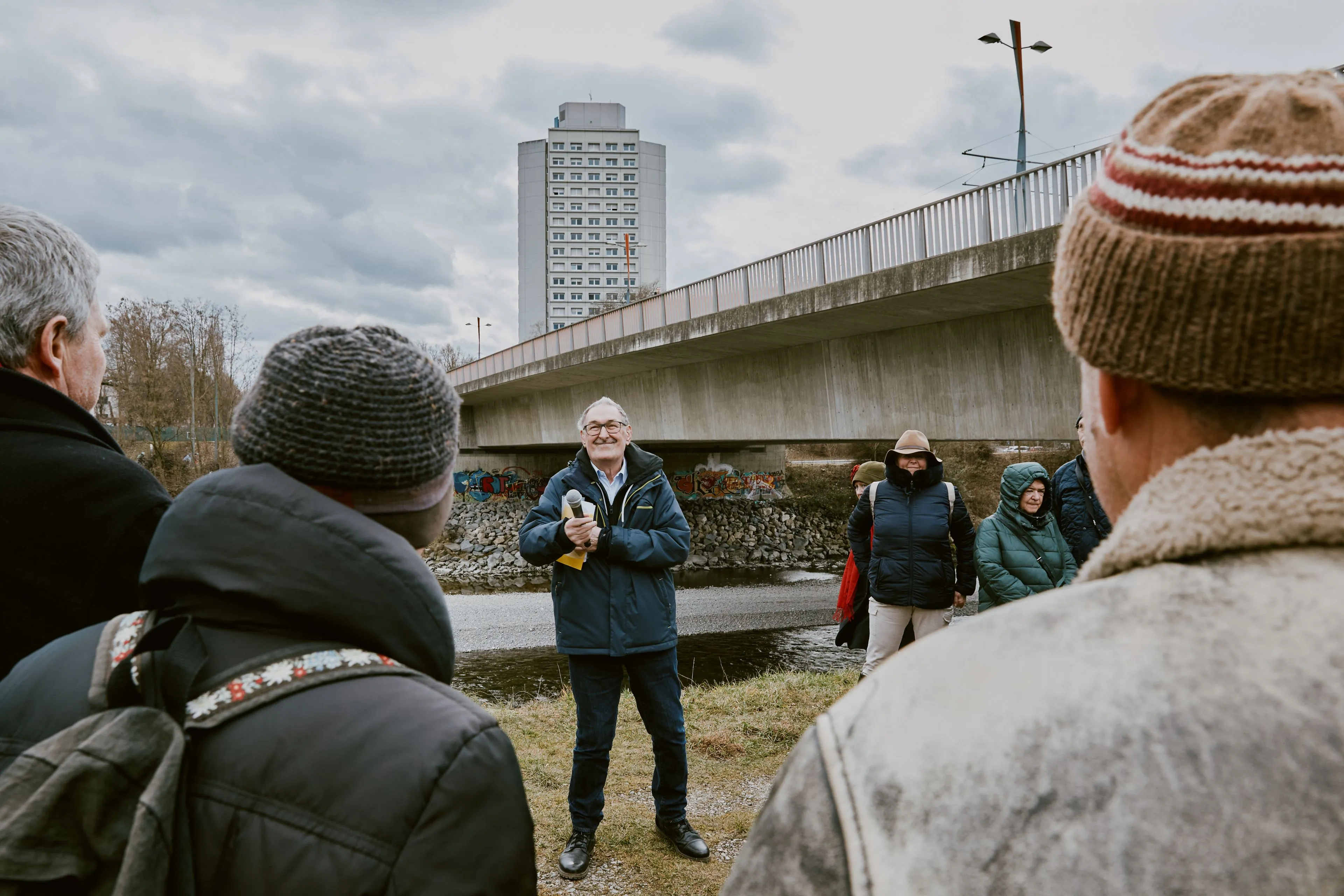 Kurt Idrizovic führt das Publikum an die Originalschauplätze, an denen der junge Bertolt Brecht schwamm, dichtete und liebte. Der Spaziergang führt vom Lech, über das Lechwehr und das „Griesle Wildwest“ bis zu den Lechauen. Dabei kommen Texte, Gedichte und Lieder Brechts aus den frühen 1920er-Jahren zu Gehör. Zeitgeschichte wird gegenwärtig, ganz so als könnte man dem jungen Brecht mit auf die Kirchweih folgen, durch Brechts Augen die waghalsigen Seiltänzer über den Dächern Lechhausens beobachten und beim Schiffschaukeln die Schwerkraft überwinden. Auch Aufschlussreiches aus der aktuellen Lechhauser Brechtforschung wird geboten.