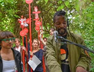 Sie entsteht im Herzen der Stadt, in den Wallanlagen am Roten Tor. Die Künstler*innengruppe Club Real hat auf dem Areal eine Vielzahl von Lebewesen entdeckt. In einem politischen Feldversuch werden die Machtverhältnisse neu gemischt. Jede/r Besucher*in kann sich einmischen! Gesucht werden Menschen, die 49 Spezies in der Gründungsphase der Republik eine Stimme geben: Denn jeder Staat braucht ein Grundgesetz, braucht Regeln, an die die Bürger*innen sich halten – die Fürsprecher und Fürsprecherinnen der Lebewesen der Organismenrepublik stellen diese Regeln auf. Club Real versorgt sie mit den wichtigsten Informationen zu den Bedürfnissen der einzelnen Lebewesen und bietet vor der verfassungsgebenden Versammlung Führungen und Einzelbegegnungen mit Spezies auf dem Staatsgebiet an. Eine Liste aller Lebewesen ist abrufbar unter: