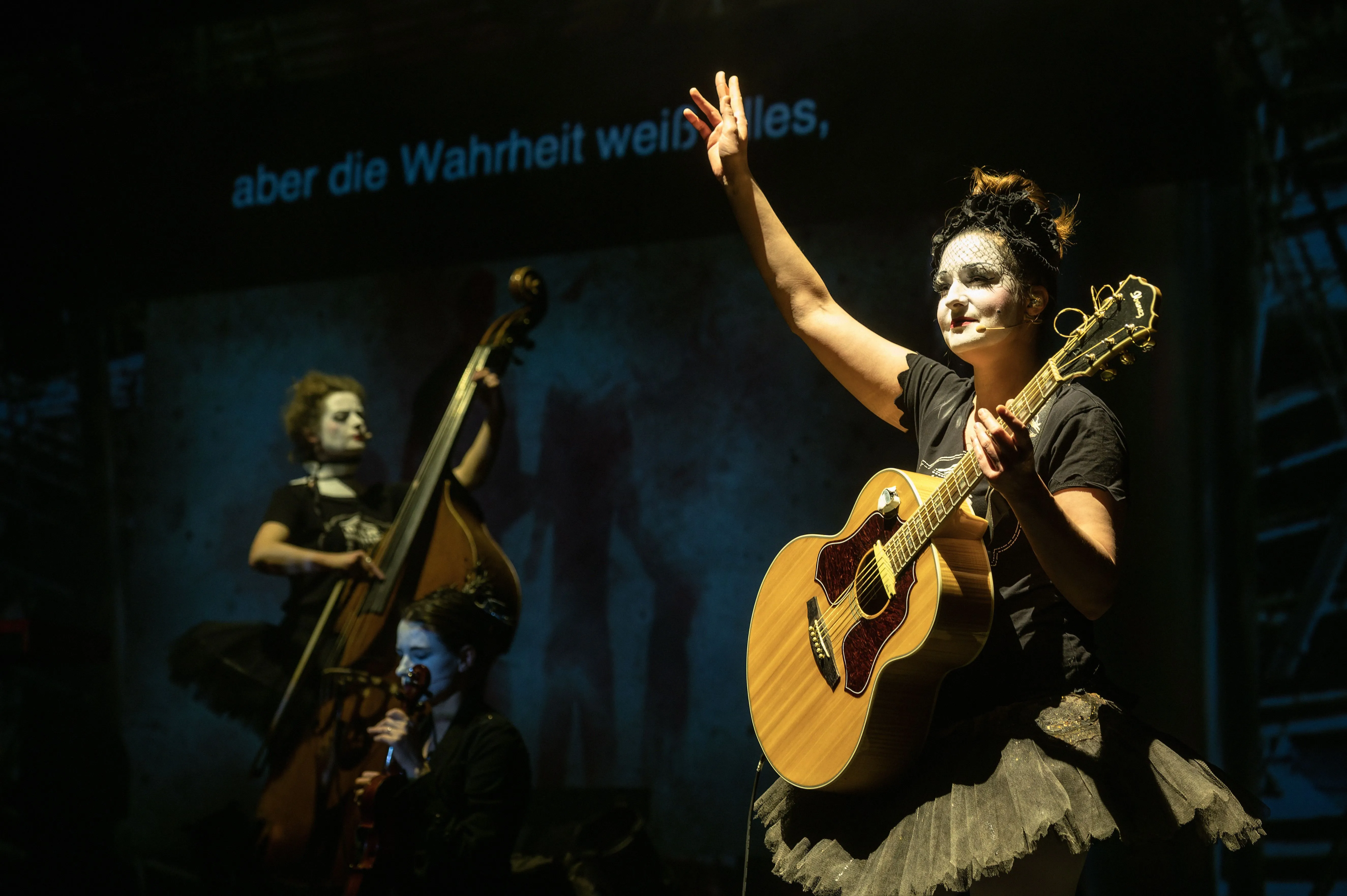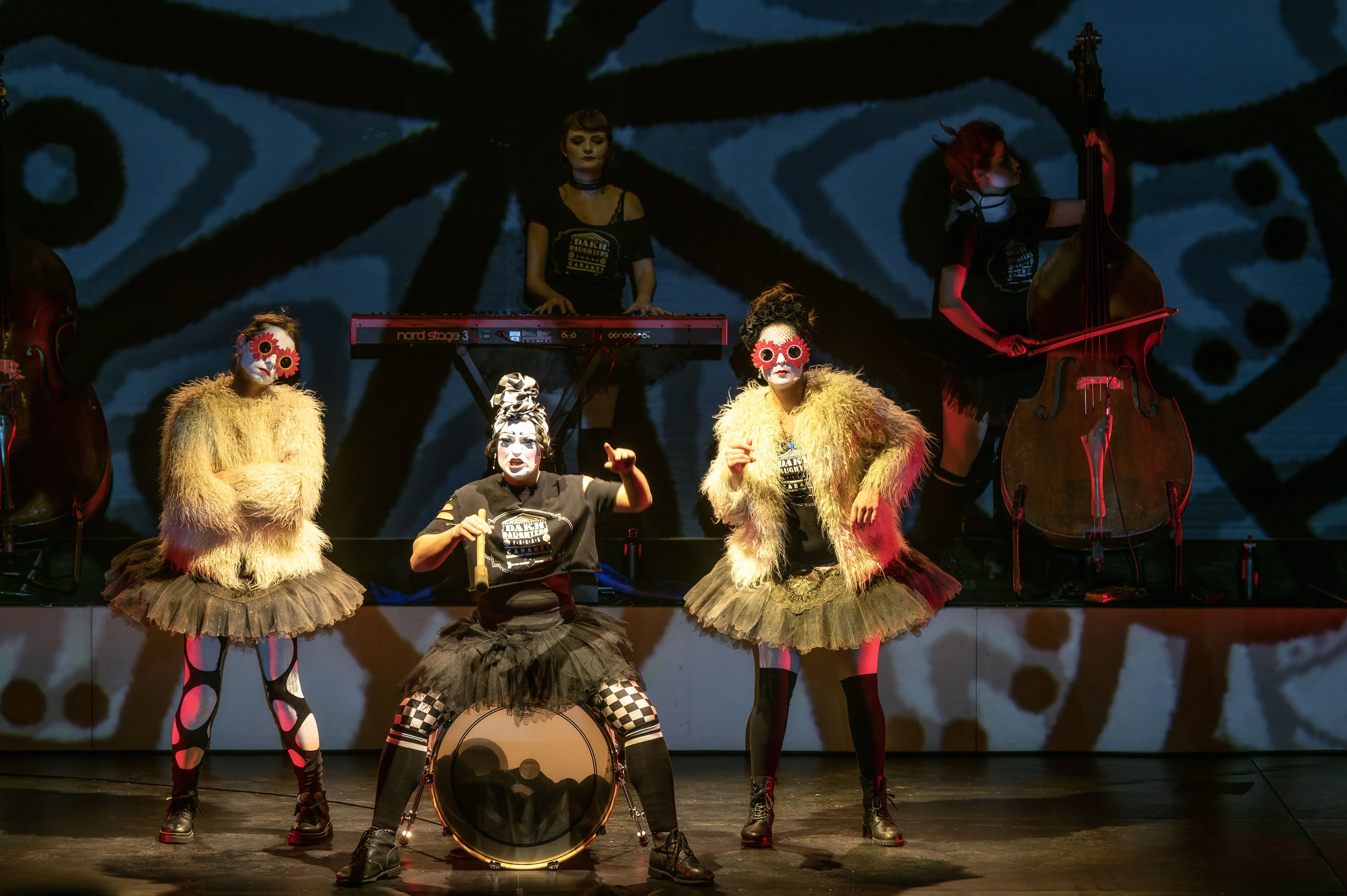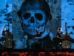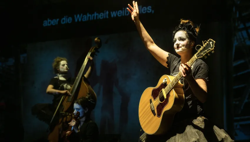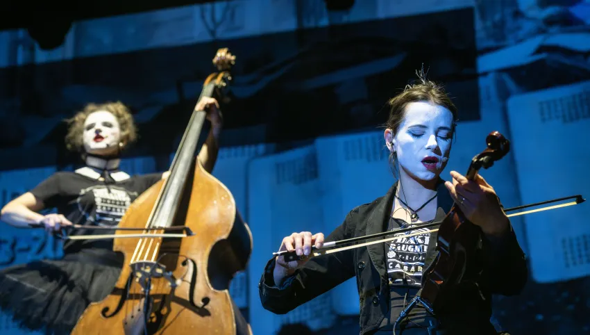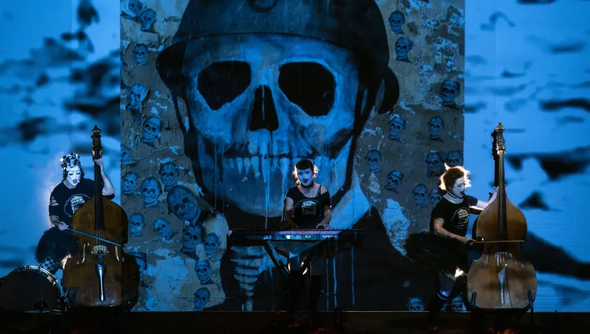 2021 begeisterten die Dakh Daughters beim digitalen Brechtfestival mit zwei neuen, von Brecht inspirierten Songs die internationale Festivalgemeinde. Das legendäre Projekt aus dem berühmten Kiewer Avantgardetheater Dakh gehört zu den schillerndsten und gleichzeitig relevantesten Musikprojekten der Ukraine: Sechs Frauen haben sich einem bizarren ästhetischen und poetischen Mix verschrieben, einem „Freak Cabaret“ aus ukrainischer Folklore, Punk, Kabarett, Prog-Rock, Klassik und mehrsprachigen Texten von u.a. Taras Schevchenko, Joseph Brodsky und William Shakespeare. Gesungen wird in fünf Sprachen, gespielt auf 15 Instrumenten, von Cello bis Oboe. Die Dakh Daughters singen von Utopie und politischer Selbstbestimmung, von der vielschichtigen Identität ihres Landes und gegen den imperialistischen Feldzug Putins. Seit dem Einmarsch Russlands in die Ukraine befindet sich die Band im Exil und tourt mit der Produktion “Ukraine Fire" durch Europa. Eine mitreissend wie ergreifende theatrale, musikalische Performance mit politischer Haltung und Botschaft.