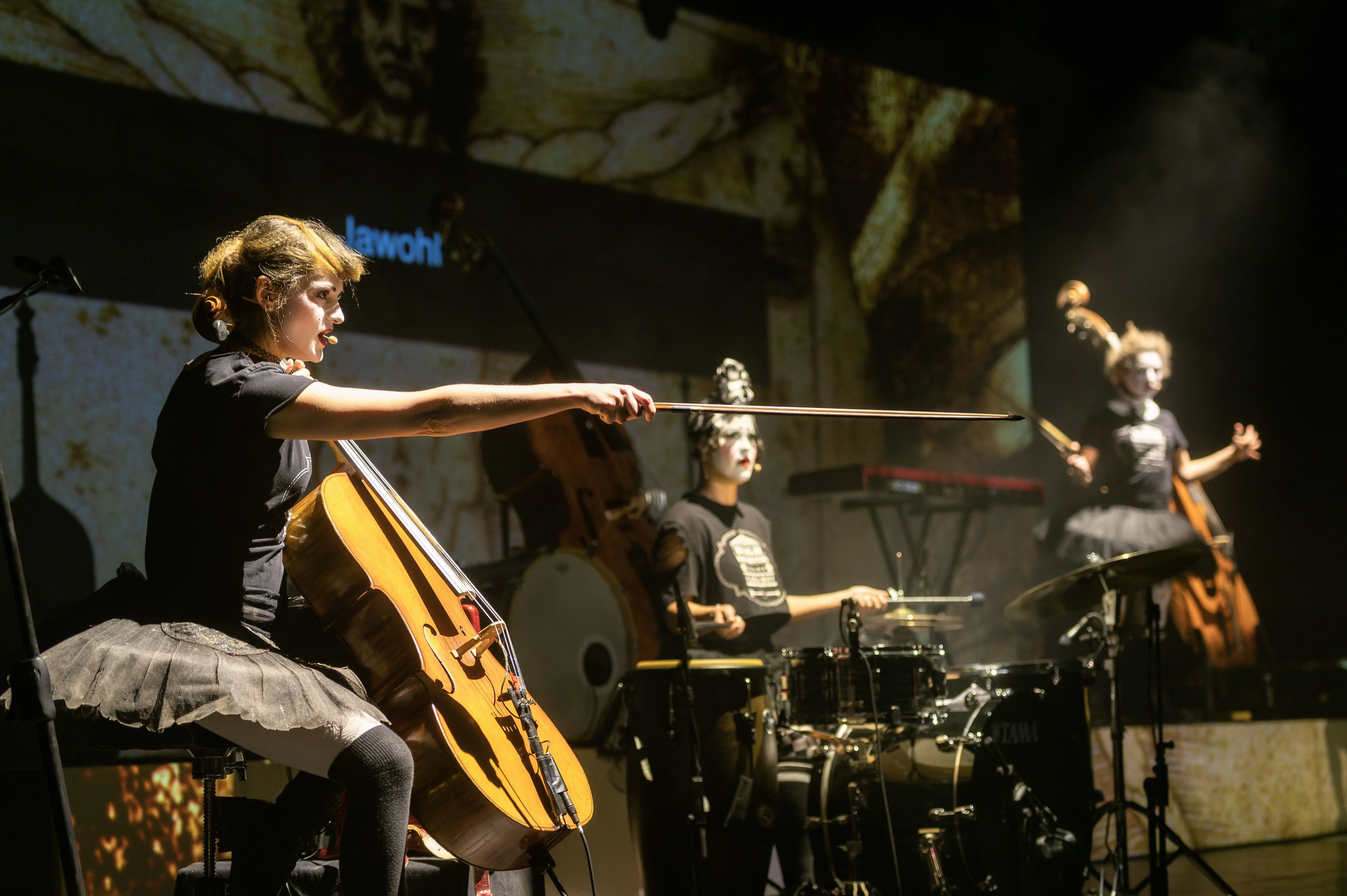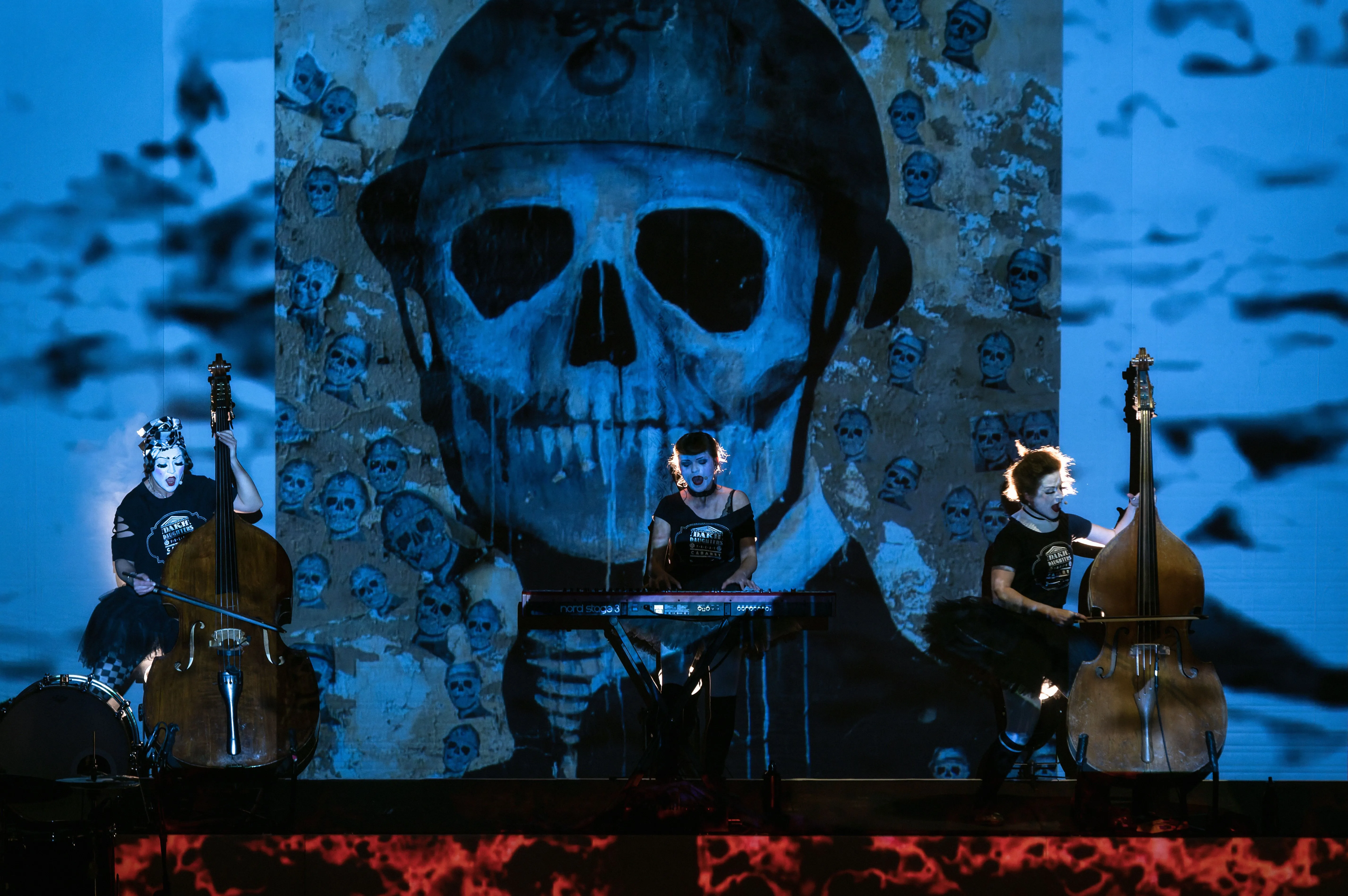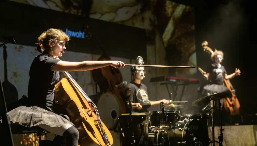2021 begeisterten die Dakh Daughters beim digitalen Brechtfestival mit zwei neuen, von Brecht inspirierten Songs die internationale Festivalgemeinde. Das legendäre Projekt aus dem berühmten Kiewer Avantgardetheater Dakh gehört zu den schillerndsten und gleichzeitig relevantesten Musikprojekten der Ukraine: Sechs Frauen haben sich einem bizarren ästhetischen und poetischen Mix verschrieben, einem „Freak Cabaret“ aus ukrainischer Folklore, Punk, Kabarett, Prog-Rock, Klassik und mehrsprachigen Texten von u.a. Taras Schevchenko, Joseph Brodsky und William Shakespeare. Gesungen wird in fünf Sprachen, gespielt auf 15 Instrumenten, von Cello bis Oboe. Die Dakh Daughters singen von Utopie und politischer Selbstbestimmung, von der vielschichtigen Identität ihres Landes und gegen den imperialistischen Feldzug Putins. Seit dem Einmarsch Russlands in die Ukraine befindet sich die Band im Exil und tourt mit der Produktion “Ukraine Fire" durch Europa. Eine mitreissend wie ergreifende theatrale, musikalische Performance mit politischer Haltung und Botschaft.