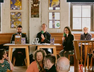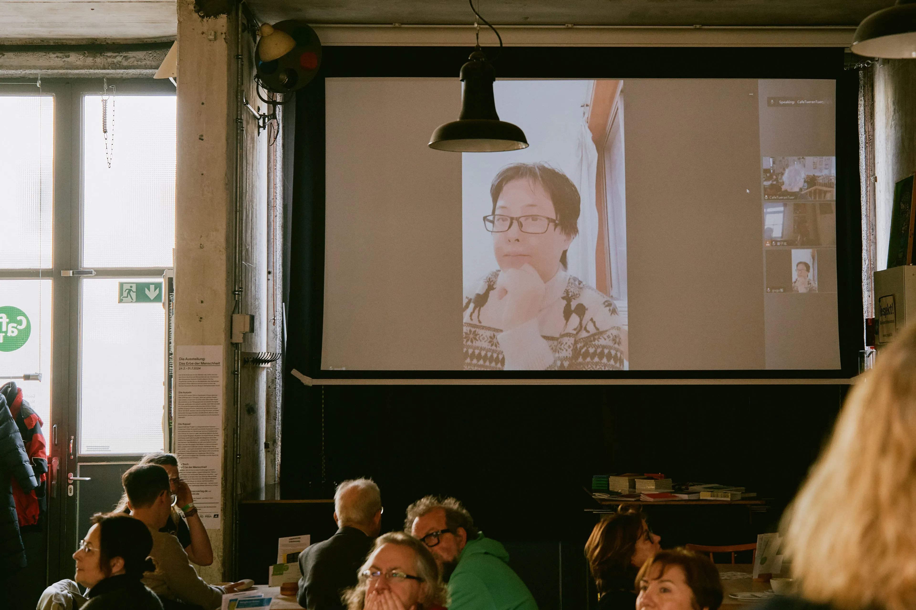 Chi Hui aus Chengdu ist eine der vielseitigsten Stimmen des zeitgenössischen chinesischen Science-Fiction-Kosmos. Die Welten, die sie entwirft, werden von riesigen Käfern, hyperintelligenten Ratten, bösen Piraten und artifiziellen Menschen bewohnt. Eine Ausstellung mit 35 Illustrationen im Café Tür an Tür zeigte Szenen aus vier Geschichten der Sci-Fi-Autorin. Im Rahmen einer Lesung am letzten Festivalsamstag wurde das Buchprojekt „Das Erbe der Menschheit“ vorgestellt. Chi Hui war live aus Chengdu zugeschaltet. Nach einem Gespräch mit Liveübersetzung von Felix Meyer zu Venne wurden Auszüge aus ihren Erzählungen gelesen, anschließend öffnete sich das Podium für eine Diskussion über die Zukunft.