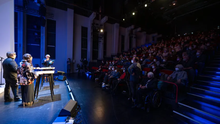 Festivaleröffnung mit Oberbürgermeisterin Eva Weber, Kulturreferent Jürgen K. Enninger, Tom Kühnel, Jürgen Kuttner. Moderation: Marion Buk-Kluger.