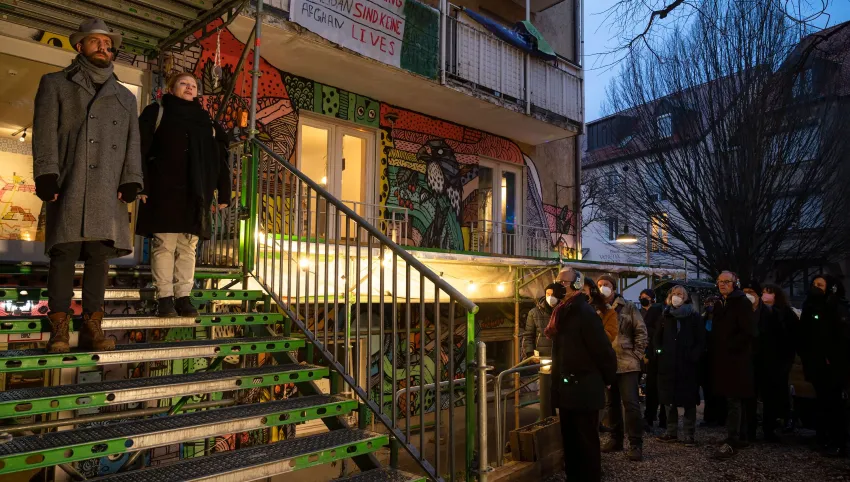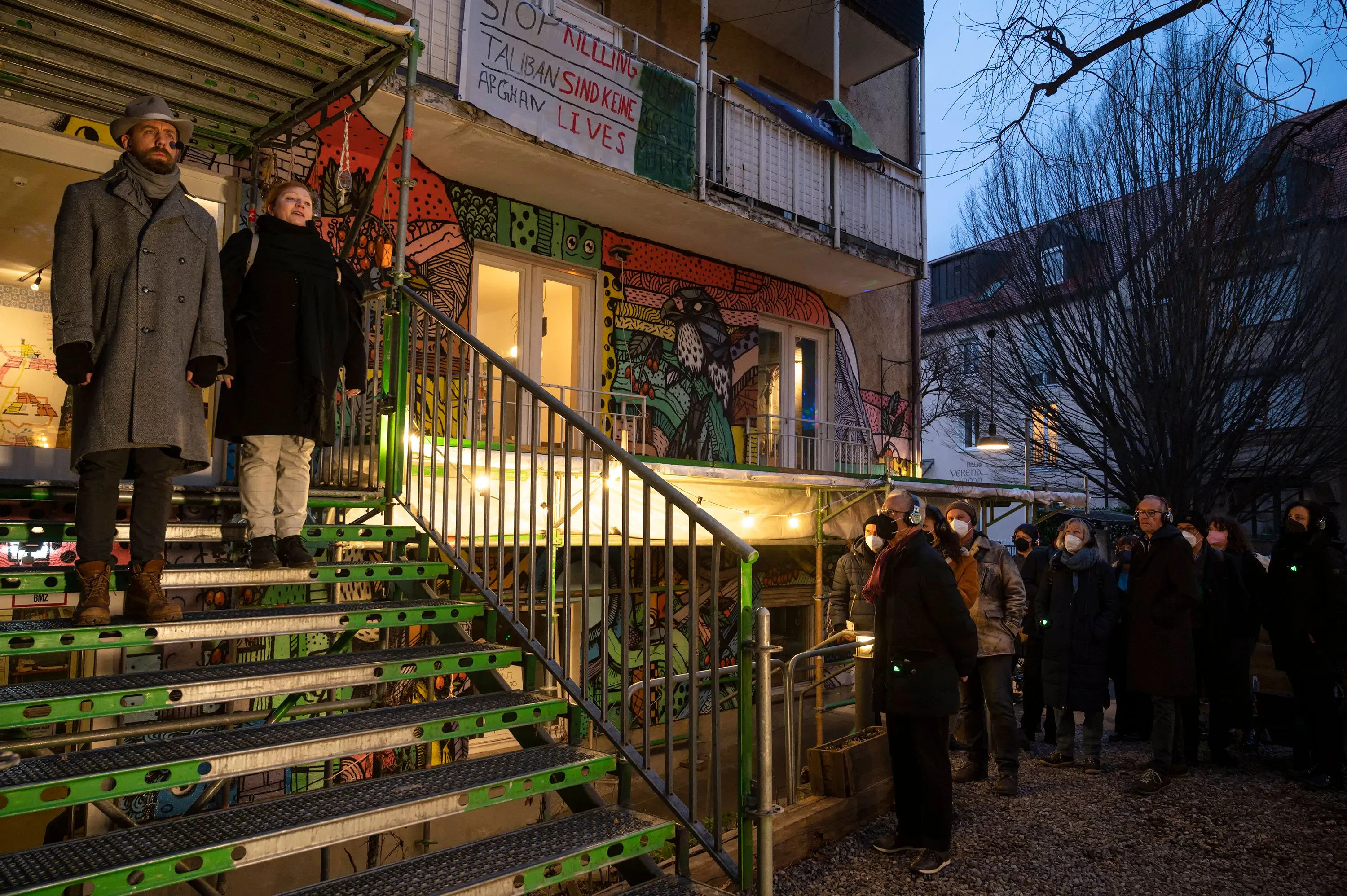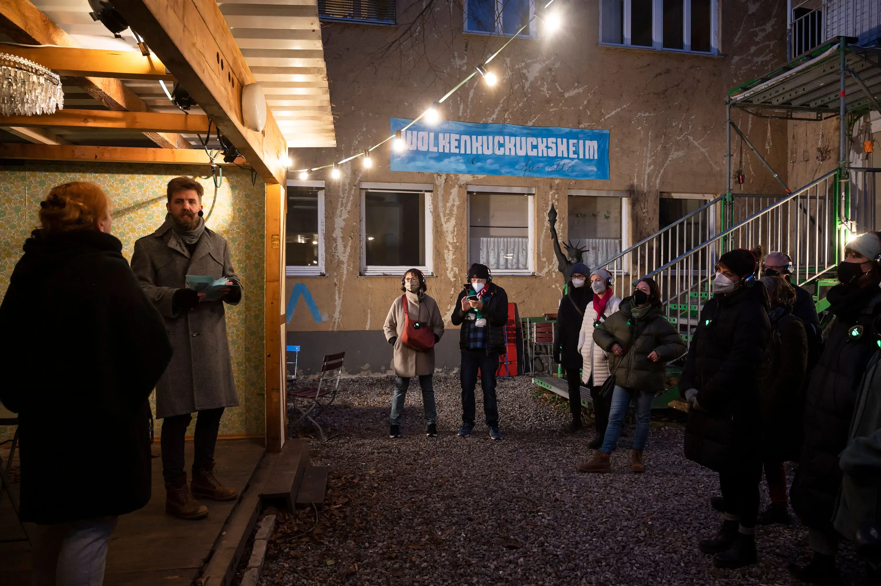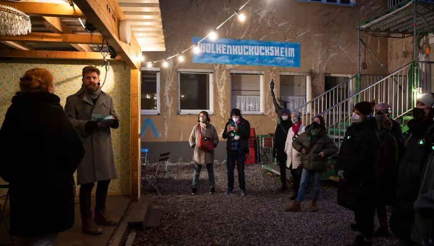 Sie sprechen vom Guten des Schäbigen, von der Ordnung der Sinnlosen, von der Tugend der Täuschung, von der veralteten Moderne. Auf dem Live-Audio-Walk begleiten dich zwei Gestalten durch den Transitbereich ihres Exillebens. In den brechtschen Gassen der Stadt verstecken sie sich und tauchen wieder auf. Du versteckst dich und tauchst wieder auf. Bald darauf entfernen sie sich, ein jeder an seine Statt. Um vielleicht doch wieder gesehen zu werden. Und am Ende stellt sich die Frage: Wo muss ich hin, wer darf ich sein?