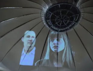 Das Brechtfestival lässt die Bolschewistische Kurkapelle Schwarz-Rot in einer Art ritueller Geisteraustreibung über die Häuserfassaden tanzen. Wiegenlieder von Brecht und Hölderlin, von Hanns Eisler und Kurt Weill orchestrieren den digitalen Streifzug durch das nächtliche Augsburg und senden ein lautes Signal auf die Bildschirme da draußen. Die Zukunft, die wir gemeinsam bauen, geht alle an.