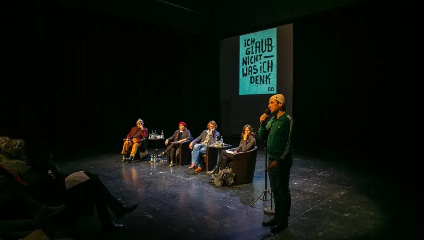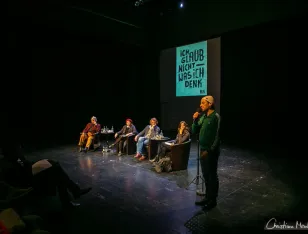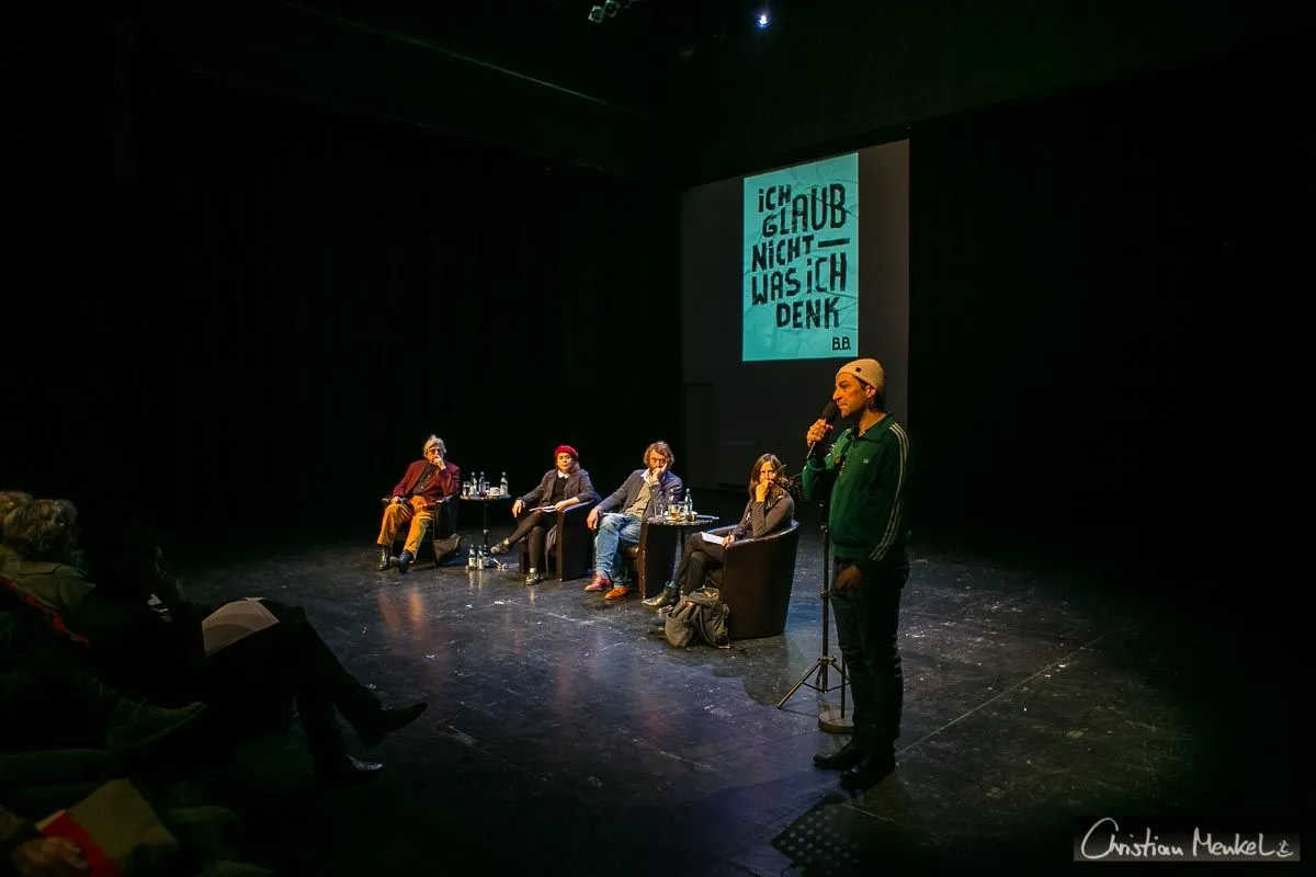 Veranstaltung ausgehändigt. Auf der Bühne vertreten die Autor*innen ihre
