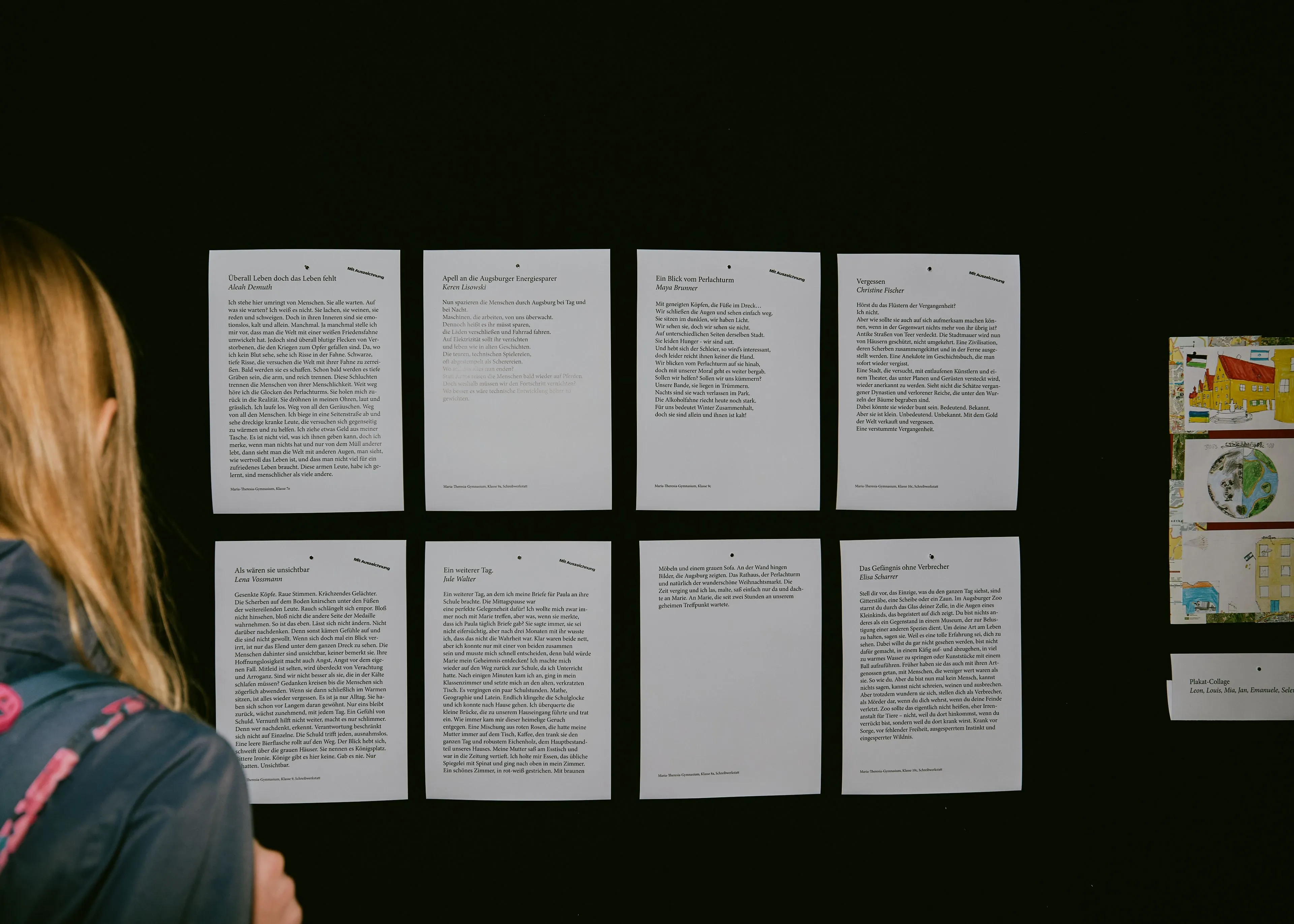Sich in Brecht hineinversetzen, mit seinem Blick das heutige Augsburg durchstreifen und die gesammelten Eindrücke poetisch verarbeiten – das war die Aufgabe des diesjährigen Kreativwettbewerbs für Kinder und Jugendliche an Augsburger Schulen. Die schönsten Beiträge wurden öffentlich gewürdigt und waren anschließend in einer Ausstellung in Brechts Kraftklub zu sehen.