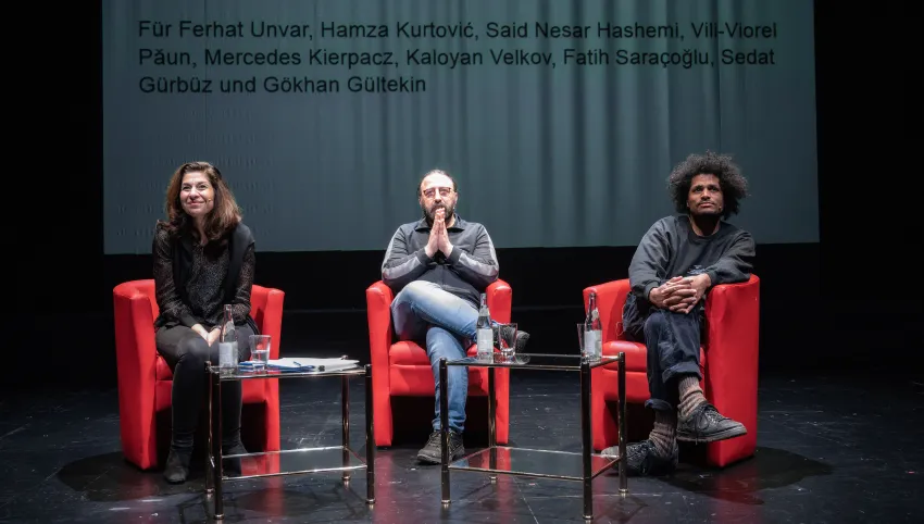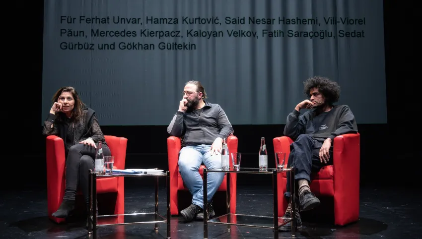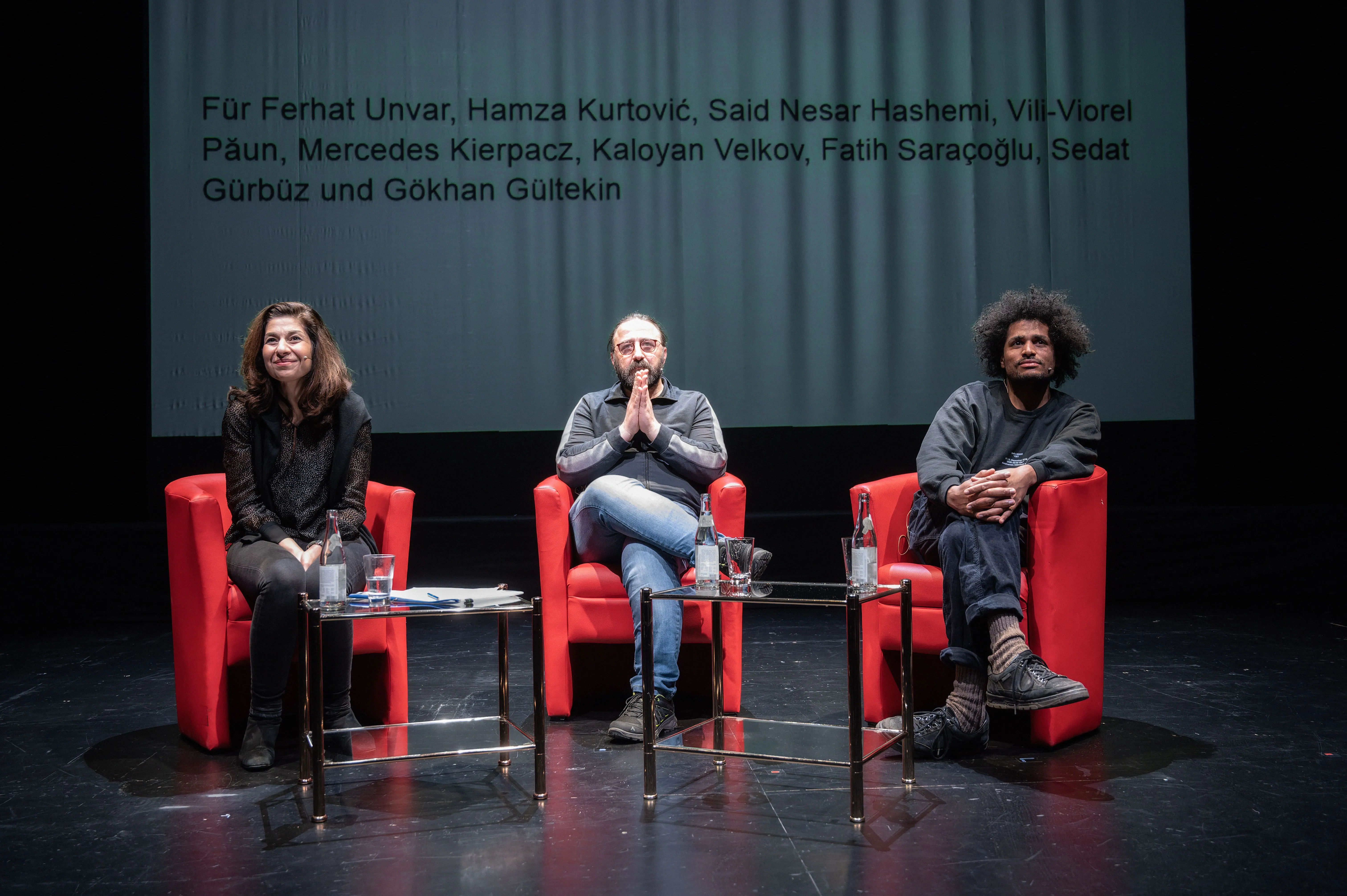 Die Essayistin Asal Dardan hält eine Rede, die nach den gesellschaftlichen Bedingungen für diesen und andere Anschläge fragt. Die filmische Dokumentation von Forensic Architecture rekonstruiert den Tag der Gewalt in Hanau. Der Autor Senthuran Varatharajah erzählt in einer Lecture Performance: "Sag mir, wo Deine Arme liegen und wann" die Geschichte der Opfer. Mit einem Kurzfilm von Cana Bilir-Meier werden Verbindungen zu anderen rechtsterroristischen Anschlägen gezogen.