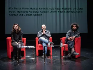 Die Veranstaltung mündet in ein Gespräch zwischen allen Anwesenden, moderiert von Asal Dardan.