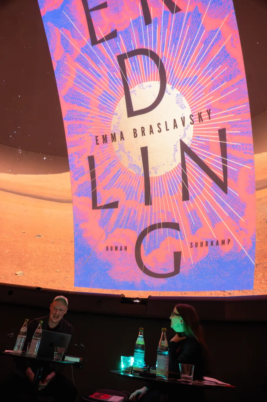Inwiefern bietet Science-Fiction die Möglichkeit, die Gegenwart zu reflektieren? Und inwiefern die Vergangenheit? Die neue Ausgabe des deutsch-chinesischen Science-Fiction-Magazins „Kapsel“ präsentiert die Kurzgeschichte »Zhurong auf dem Mars« von Regina Kanyu Wang, in der eine KI auf dem Roten Planeten auf Sinnsuche geht. Emma Braslavsky sucht in ihrem Buch „Erdling“ hingegen nach der entführten Sahra Wagenknecht – und wird auf dem Mars fündig. Warum brauchen wir gerade heute fantastische Geschichten? Welche Freiheiten und Einschränkungen bietet das Genre? Und warum ist der Mars ein menschlicher Sehnsuchtsort? Das Planetarium sorgt mit Bildern aus seinem Repertoire für die passende Kulisse.