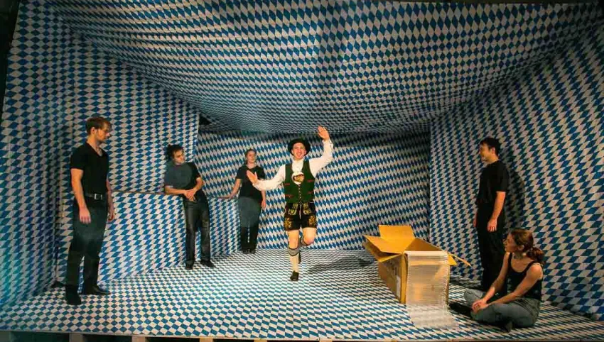 Das theter ensemble arbeitet in flachen Hierarchien mit jungen Autodidakt*innen, die ihre berufliche Zukunft im Theater sehen. Das Brechtfestival bringt das Kollektiv mit einem Stück von Rainer Werner Fassbinder zusammen. Die Staatsmacht wird darin überrumpelt von jungen Revolutionär*innen, die in Bayern eine sozialistische Republik ausrufen.