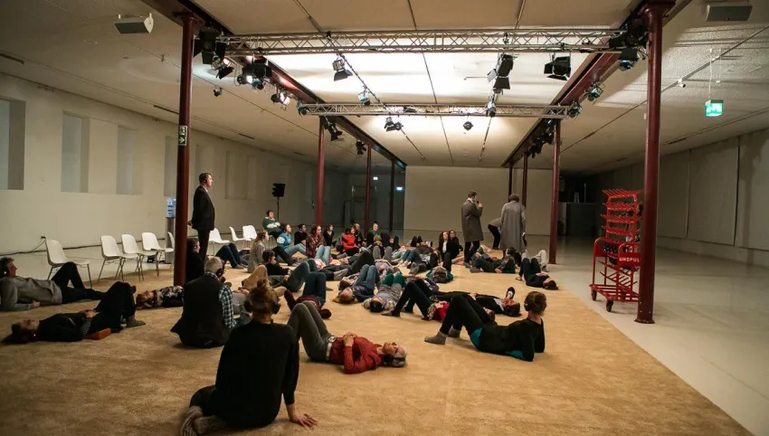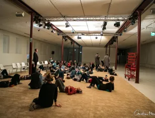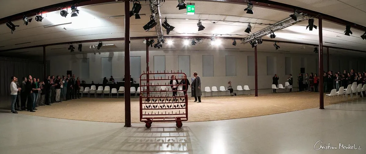 An einem Ort, an dem Menschen gezwungen sind, auf engstem Raum zusammenzuleben, entstehen Allianzen. Doch es gären auch Vorurteile. In einem theatralen Gedankenexperiment ergründet das Berliner Kollektiv Turbo Pascal die Auswirkungen wertebasierter Einflüsterungen. Via Kopfhörer erlebt das Publikum eine spielerische Perspektive auf sein Gegenüber und sich selbst.